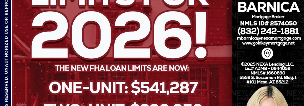 loan limits - Melissa Barnica -Mortgage BrokerHi, my name is Melissa Barnica. I’m a Loan Officer with NEXA Lending LLC., offering personalized mortgage solutions, fast customized quotes, great rates and service with integrity.