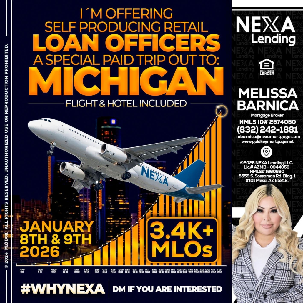 MICHIGAN TRIP - Melissa Barnica -Mortgage BrokerHi, my name is Melissa Barnica. I’m a Loan Officer with NEXA Lending LLC., offering personalized mortgage solutions, fast customized quotes, great rates and service with integrity.