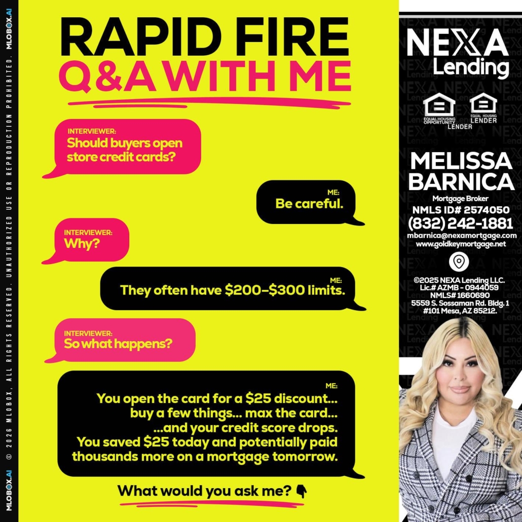 Hi, my name is Melissa Barnica. I’m a Loan Officer with NEXA Lending LLC., offering personalized mortgage solutions, fast customized quotes, great rates and service with integrity.