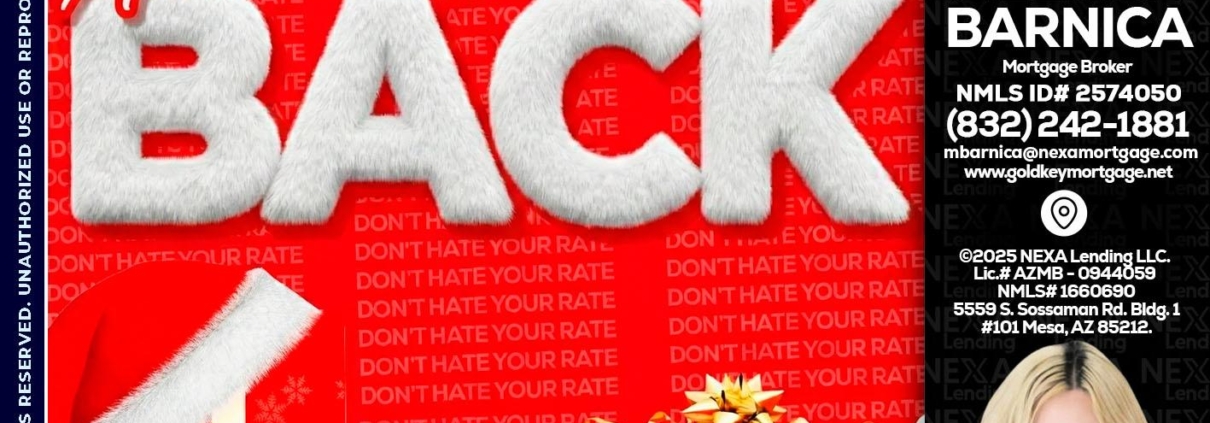 Hi, my name is Melissa Barnica. I’m a Loan Officer with NEXA Lending LLC., offering personalized mortgage solutions, fast customized quotes, great rates and service with integrity.