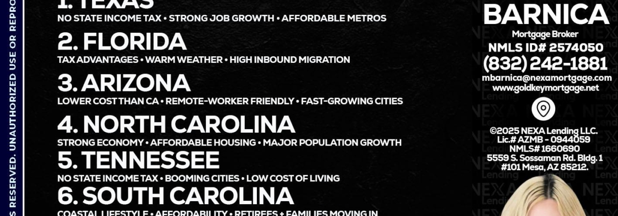Hi, my name is Melissa Barnica. I’m a Loan Officer with NEXA Lending LLC., offering personalized mortgage solutions, fast customized quotes, great rates and service with integrity.
